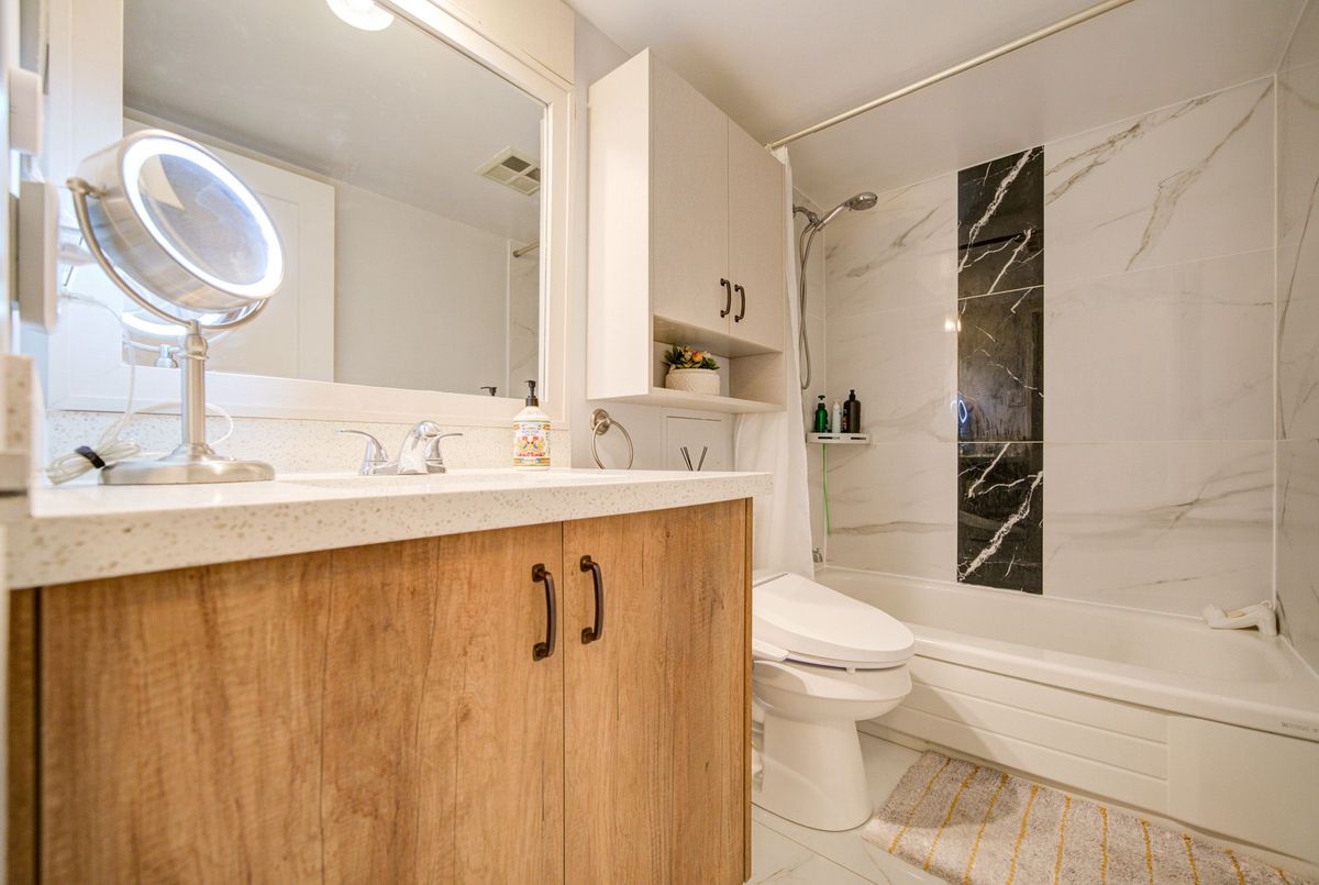 Fully Renovated Turn-Key Suite! Largest Layout In The Building Offering 1,461 Sqft. Spacious 2 Bedroom + Den, 2 Bathroom Unit . Functional Layout With Renovated Modern Kitchen Featuring Open Concept Design, Ideal For Entertaining And Family Living. Rare Private Balcony With Unobstructed East Views. Quiet And Private Unit. Brondell Circle RC 100 Reverse Osmosis Water Filtration System. Prime Location Steps To Sheppard Subway Station, Close To Shopping, Restaurants, Cafés, Banks, Medical Clinics And All Amenities. Well-Managed Building With Excellent Amenities Including 24 Hr Security, Indoor Pool, Gym, Sauna, Award-Winning Garden With BBQ Area, Media/Party Rooms And Visitor Parking.Extras: Locker And Premium Parking Included. All-Inclusive Maintenance Fees Cover Utilities And Cable TV. High-Speed Internet With Rogers Available At Approx. $40/Month.Move-In Ready. Shows Well.