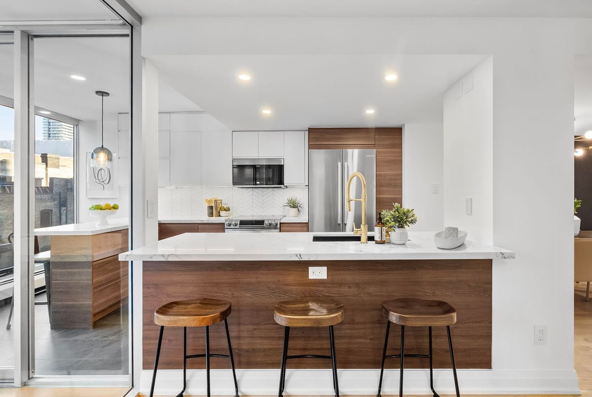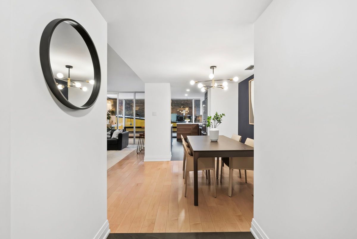 Executive living. But make it fun for once! "Executive living" gets thrown around a lot in real estate. Low maintenance, high-end finishes, functional layout, great location, turnkey lifestyle, you know the pitch. But here's the thing: those same qualities that suit the busy professional? They're exactly what families want. And retirees. And basically everyone with a pulse and good taste. No building. No suite. Nowhere in this city does it better than Unit 404 at The Wellington. "Call it a home... and yes, that word is intentional. Approximately 1,500 sq ft of bright, modern, elevated living: 3+1 beds, 2 full baths, ample storage, and parking. In what has to be Toronto's best central address for executives, families, and discerning downsizers alike. The kitchen is highly functional with an island and two bar seating areas, flowing into a connected family room and a versatile den with a Murphy bed that effortlessly converts to a proper fourth bedroom. Beautiful hardwood floors tie the great room together and honestly, even the realtors are picturing dinner parties. (Am I buying this place?) The principal suite features walk-through closets with built-ins leading to a fully updated bath and a king-sized bedroom with city views that will make getting out of bed genuinely difficult. The second and third bedrooms are both generously sized, well-appointed, and just... feel good. You'll be proud to tuck the kids in or show guests to their room. The family bath? Warm, considered and total Kinfolk magazine energy. There's a huge laundry closet with top-loading machines (superior, full stop). This is a turnkey, fully updated suite with all the scale you dream of and just enough personality to make it a home. On Wellington. Steps from everything that makes this downtown Toronto spot the city's most coveted pocket, transit, shopping, the lake, the best markets in the city." So whether you're a power exec, a five-year-old, or five going on eighty-two...This one's for you.