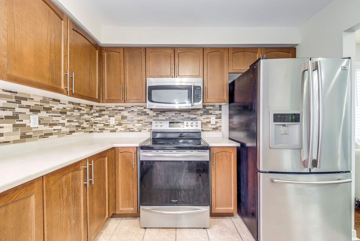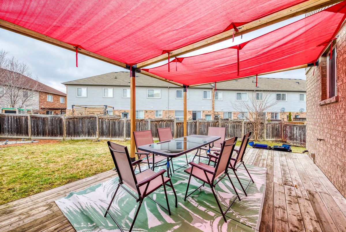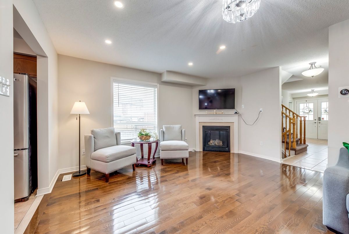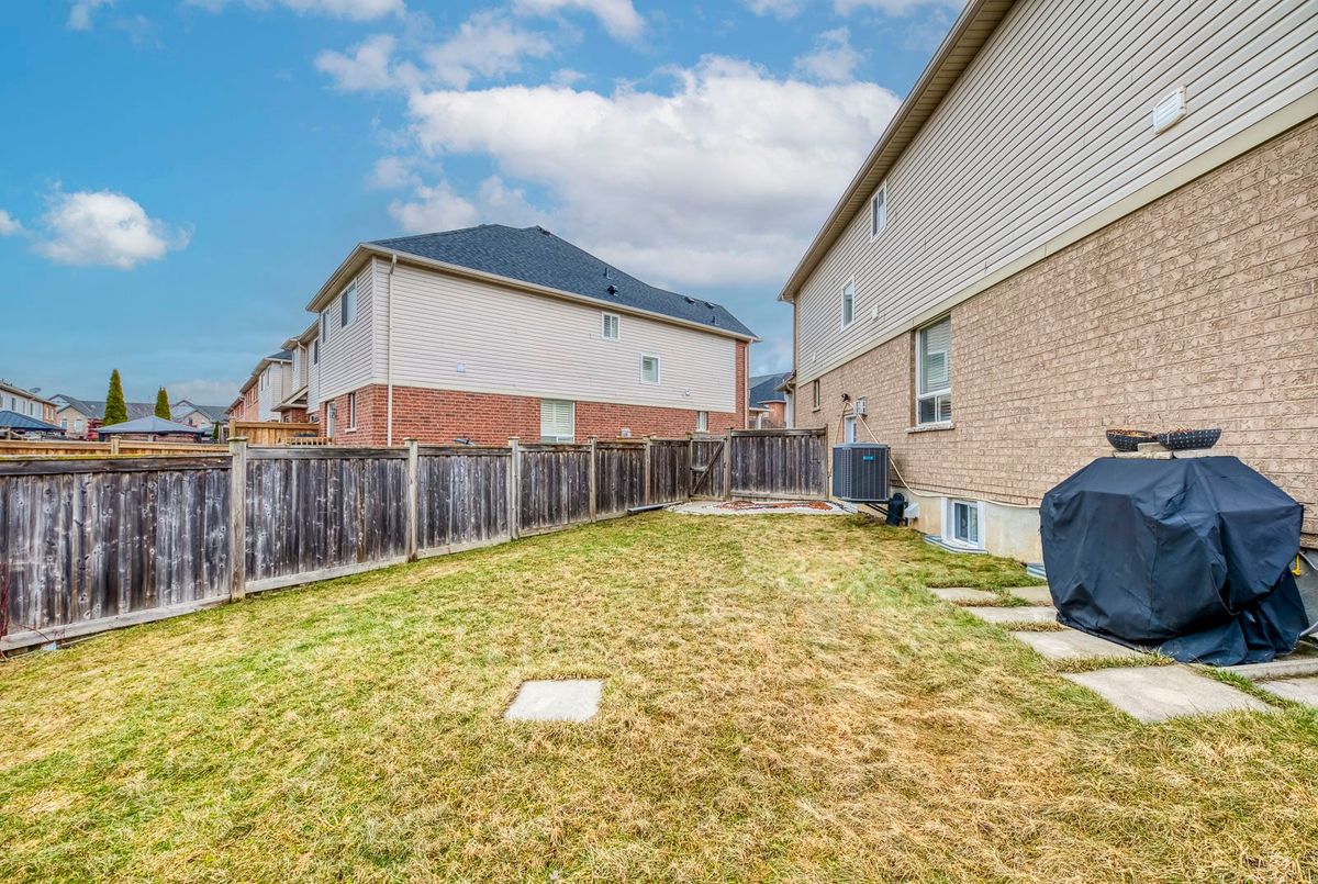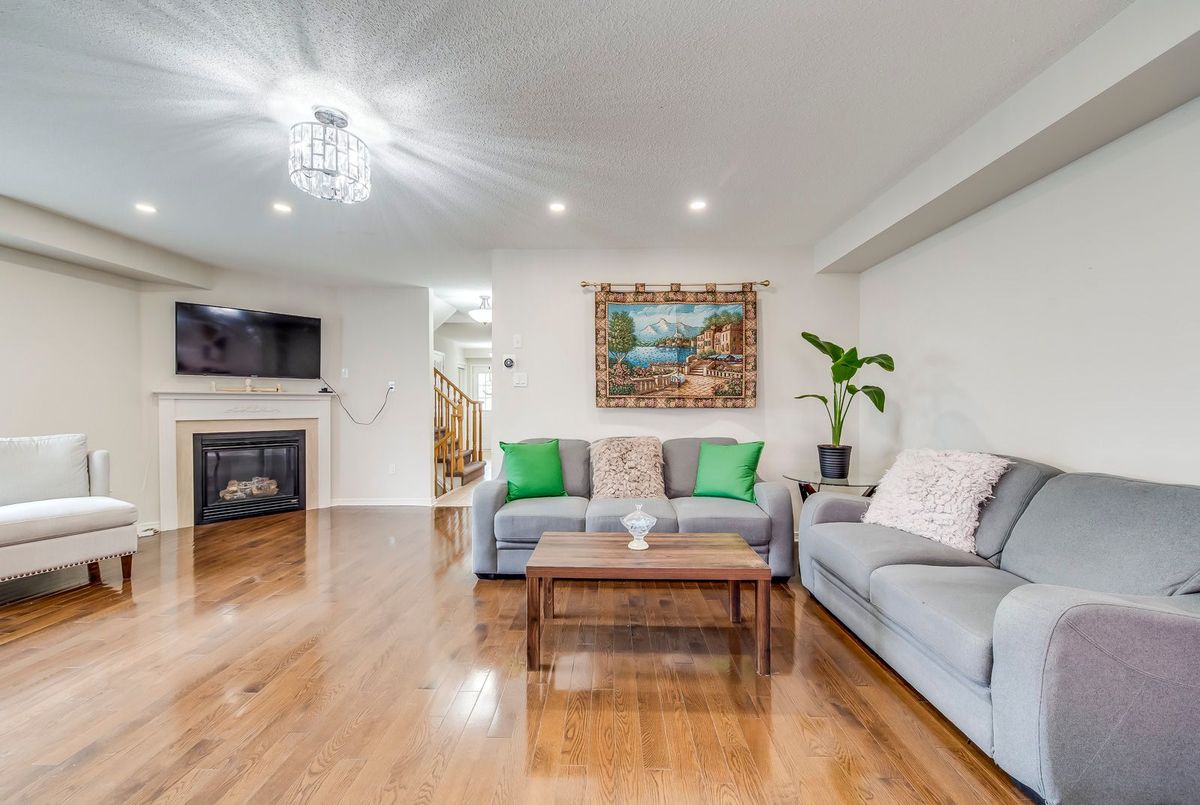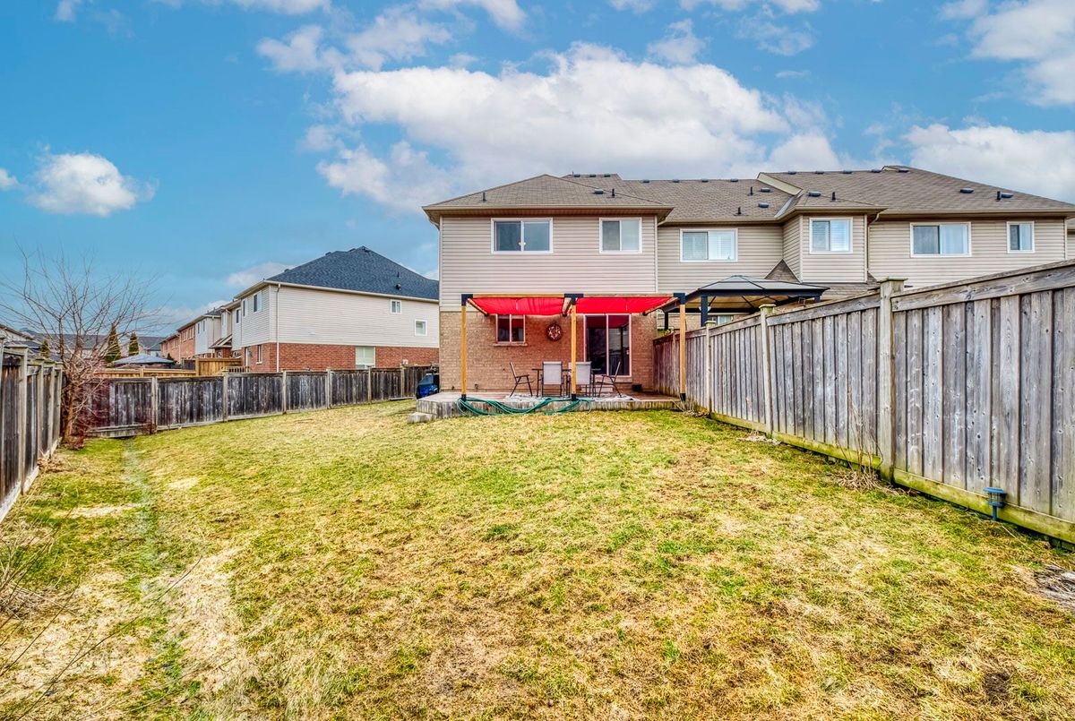 Discover refined living in this exceptional end-unit executive townhome, offering 1,761 sq ft of thoughtfully designed space and the feel of a semi-detached residence. Perfectly positioned on a rare, oversized pie-shaped lot with a pool-sized backyard, this home blends elegance with everyday functionality.A grand double-door entry welcomes you into a spacious foyer, leading to a beautifully appointed great room featuring a cozy gas fireplace-ideal for both relaxing and entertaining. The well-designed kitchen seamlessly connects with the dining area, creating a bright and inviting space for gatherings.Upstairs, you'll find generously sized bedrooms along with the added convenience of second-floor laundry. The primary suite is a true retreat, complete with a walk-in closet and a luxurious ensuite featuring a separate shower and soaker tub.Adding exceptional value, the professionally finished basement offers a self-contained apartment with a separate entrance, 2 bedrooms, full kitchen, bathroom, and its own laundry. Currently leased to a quiet and reliable single tenant paying $1,735 per month, with flexibility to stay or vacate. Ideally located just minutes from GO Transit, a leisure centre, and library, this home delivers the perfect balance of comfort, sophistication, and convenience.