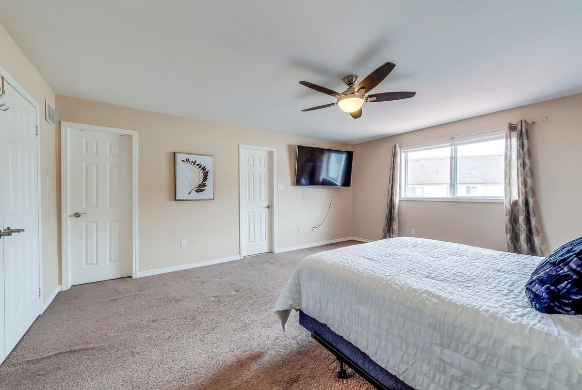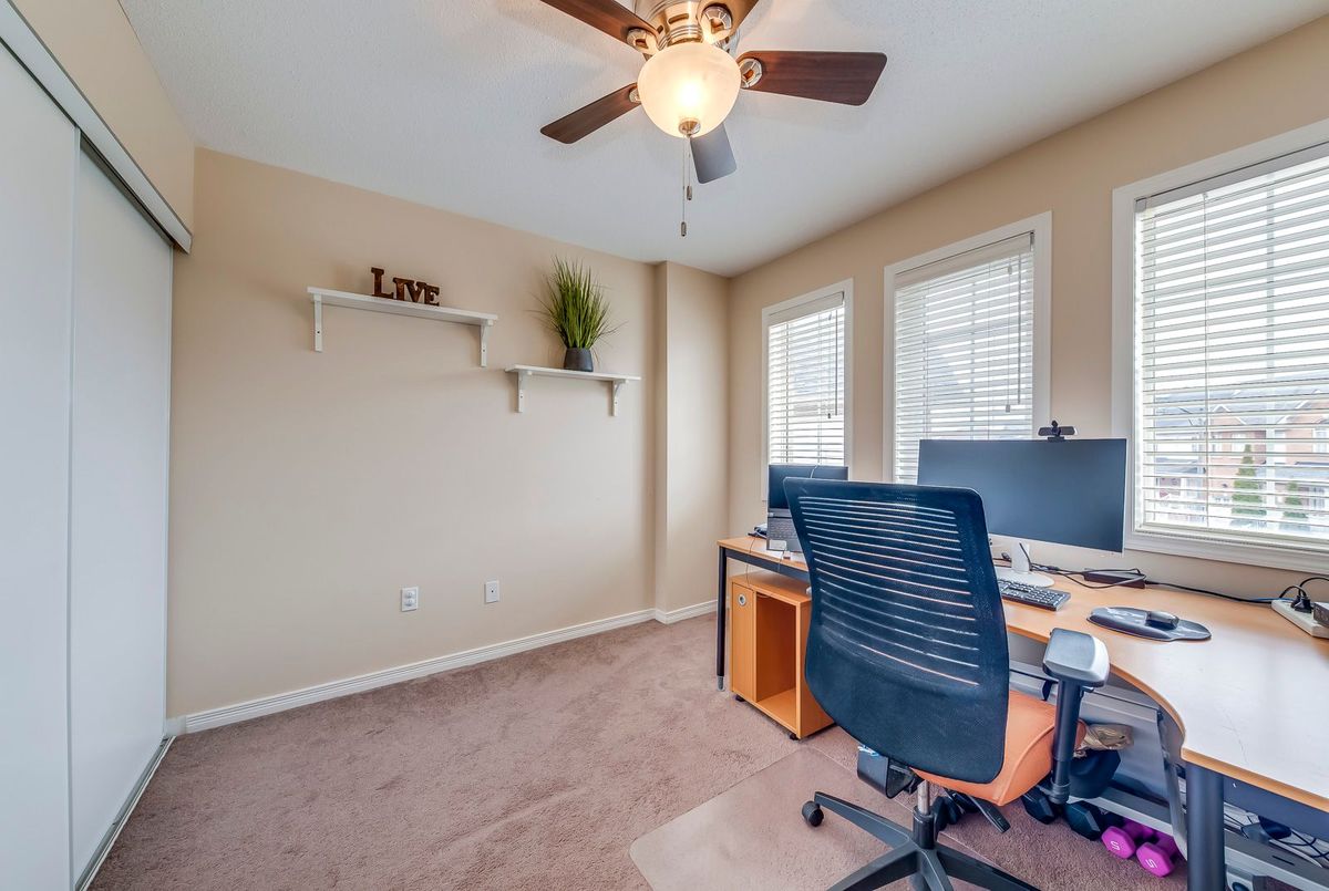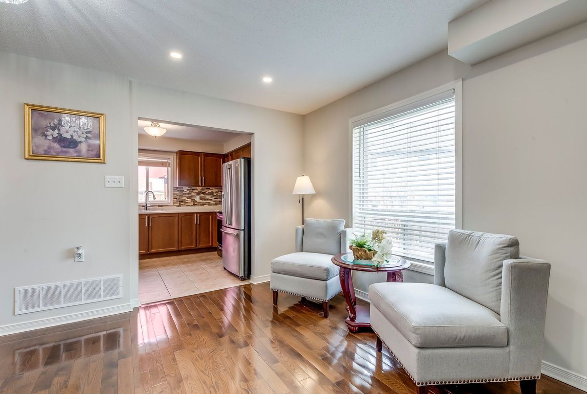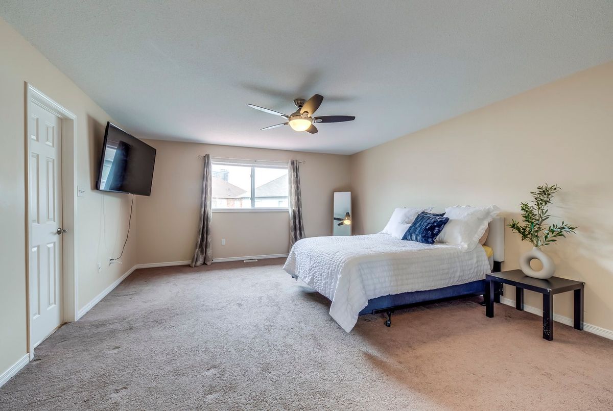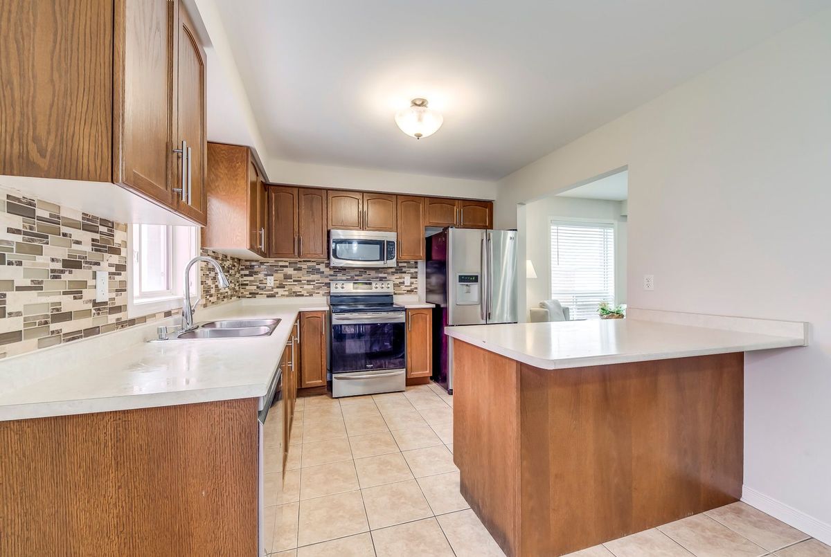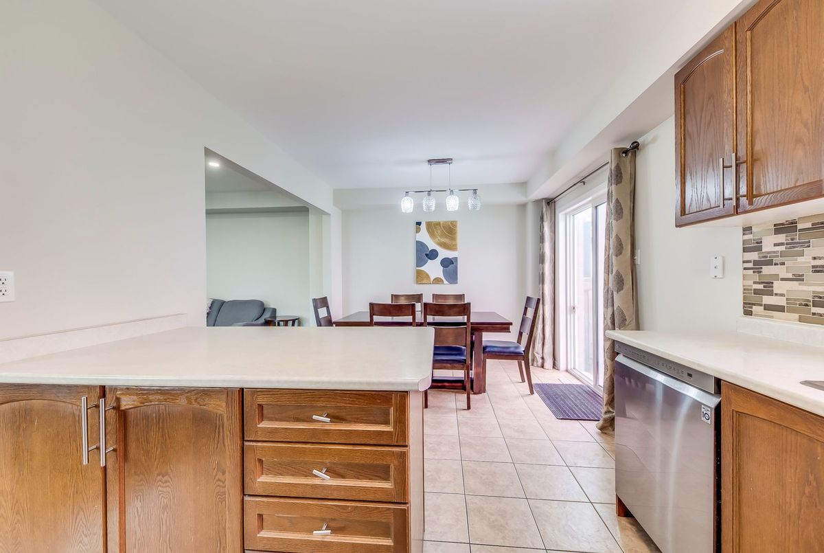 Discover refined living in this exceptional end-unit executive townhome, offering 1,761 sq ft of thoughtfully designed space and the feel of a semi-detached residence. Perfectly positioned on a rare, oversized pie-shaped lot with a pool-sized backyard, this home blends elegance with everyday functionality.A grand double-door entry welcomes you into a spacious foyer, leading to a beautifully appointed great room featuring a cozy gas fireplace-ideal for both relaxing and entertaining. The well-designed kitchen seamlessly connects with the dining area, creating a bright and inviting space for gatherings.Upstairs, you'll find generously sized bedrooms along with the added convenience of second-floor laundry. The primary suite is a true retreat, complete with a walk-in closet and a luxurious ensuite featuring a separate shower and soaker tub.Adding exceptional value, the professionally finished basement offers a self-contained apartment with a separate entrance, 2 bedrooms, full kitchen, bathroom, and its own laundry. Currently leased to a quiet and reliable single tenant paying $1,735 per month, with flexibility to stay or vacate. Ideally located just minutes from GO Transit, a leisure centre, and library, this home delivers the perfect balance of comfort, sophistication, and convenience.