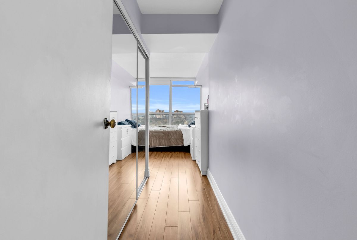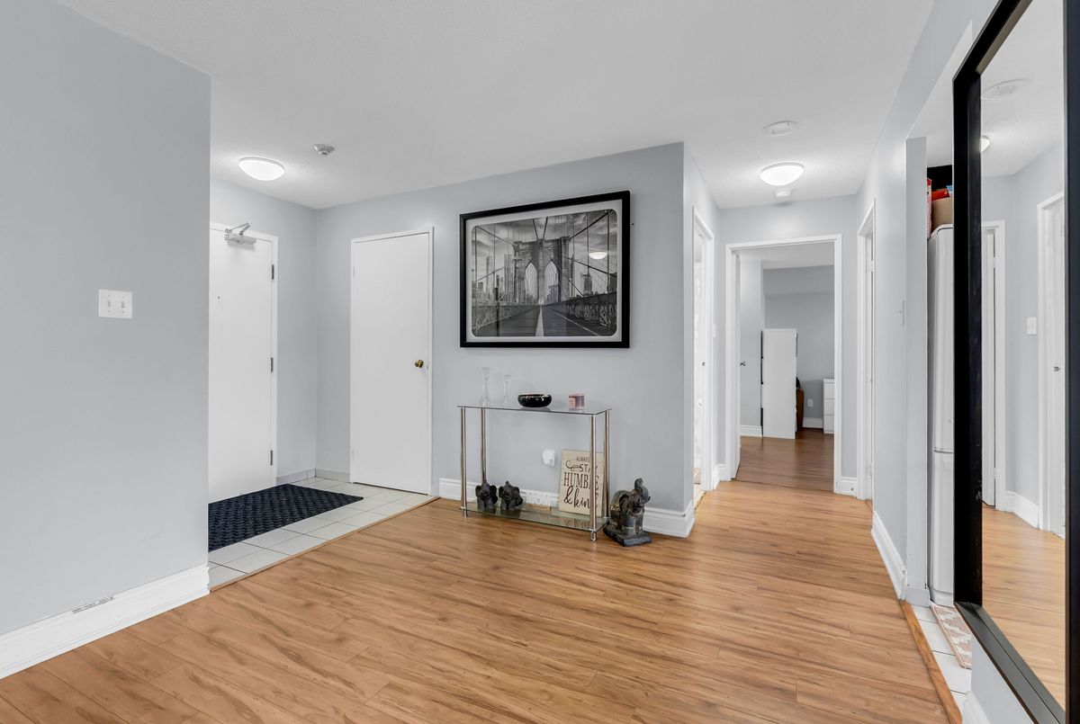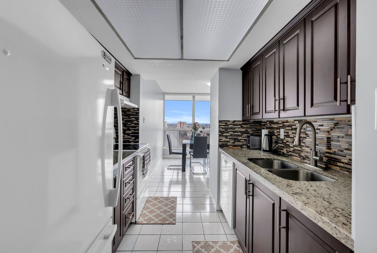 Spacious 2-bedroom, 2-bathroom condo with a layout that offers more usable space than many newer units. The open-concept living and dining area is bright and functional, with well-sized rooms throughout. Located in the gated Platinum on the Humber community at Kipling and Steeles, with 24-hour security and well-maintained grounds. Residents have access to a full range of amenities including indoor and outdoor pools, gym, tennis and squash courts, party room, and visitor parking. Surrounded by green space with nearby access to the Humber River and trail system. Conveniently close to the Finch LRT, transit to Kipling Subway, major highways, shopping, York University, Humber College, and Pearson Airport. Maintenance fees include all utilities, cable, and high-speed internet.