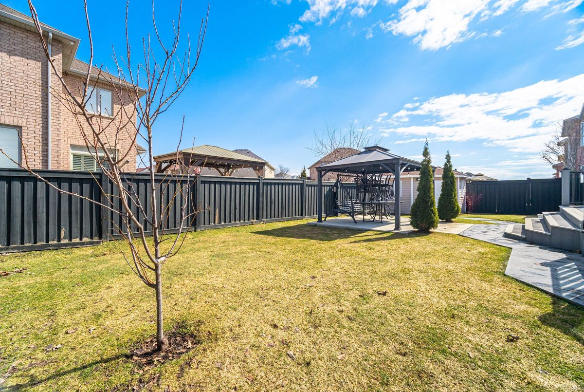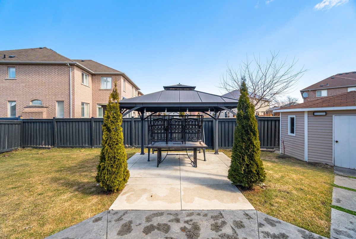 Luxury 3,338 Sq. Ft. Home on a Premium Merged Lot in Prime Brampton Location! Beautifully upgraded residence situated on a premium lot formed by merging two lots, offering enhanced outdoor space, privacy, and curb appeal. Boasting $$$ in upgrades, the exterior features exposed aggregate and stamped concrete, a glass-railing porch, designer entry, and modern garage doors. Enjoy 5-ft side clearances with stamped walkways and a full professional sprinkler system. Outdoor living is elevated by a custom-built deck and an integrated gourmet kitchen with a direct natural gas BBQ line. This elite space further features a large gazebo set on a stamped concrete floor alongside a specialized concrete-floor storage shed with an asphalt shingle roof. Inside, a raised ceiling foyer and curved architectural staircase create a strong first impression.The home offers 4 bedrooms, 3 full bathrooms upstairs, and a large upper-level den.The primary suite includes a walk-in closet and private ensuite, while a second bedroom features semi-ensuite access, with two additional bedrooms sharing a full bath. Interior highlights include smooth ceilings, plaster moulding on the main floor, crown moulding throughout, hardwood flooring, boxed pot lights, and designer feature walls, along with California shutters, zebra blinds, and tinted front windows. Convenient main floor laundry.The kitchen features high-end wood cabinetry, a matching pantry, granite surfaces, and a Canadian-made island range hood (950 CFM) with high-velocity ventilation. An expansive unspoiled basement with a large open layout, cold room, and enclosed storage space offers excellent future potential. Additional features include a 200 Amp panel, 360 8-camera security system, high-efficiency furnace (2025), owned water heaters, and an upgraded city water line (approx. 10K) designed to support future basement development or a secondary suite.
