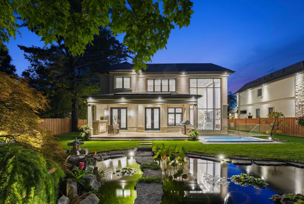 Welcome to 371 Willis Drive, an extraordinary custom-built estate by award-winning architect Keeren Design, ideally located in West Oakville. Inspired by classic French chateau architecture, this home features a timeless white stone exterior, elegant black-framed windows and meticulously landscaped grounds. Spanning 7,500+ SF across three levels, it offers 4+3 bedrooms and 7 bathrooms, each crafted with exceptional detail. The main level features an open-concept layout with 10-ft ceilings and premium finishes. The chef's kitchen is a masterpiece with an oversized island, GEOLUXE porcelain countertops and backsplash, and Thermador built-in appliances including a 6-burner cooktop & 72" refrigerator. It flows seamlessly into the great room, where 20-foot ceilings, a linear gas fireplace, custom built-ins & expansive floor-to-ceiling windows create a grand and inviting atmosphere. A formal dining room, living room, bar, home office, powder room & mudroom complete this level. An oak staircase with glass railings leads to the upper floor, home to a primary suite with a custom walk-in closet & spa-inspired ensuite featuring radiant heated floors, freestanding tub, dual vanities & double rainfall shower. Additional bedrooms each have walk-in closets & private ensuites. The finished lower level adds 3 bedrooms, a full bathroom, modern kitchen, recreation area, media room & office. Elegant design elements are found throughout, including tray ceilings with LED lighting, large aluminum curtain wall skylights, built-in speakers & wide-plank oak flooring. Outdoors, enjoy a private backyard oasis with a covered concrete patio, koi pond, Hydropool swim spa & lush gardens. The front offers a heated granite driveway on reinforced concrete for up to 8 cars, leading to a 3-car garage with concrete flooring. Located near Appleby College, top schools, parks, Lake Ontario & major highways, this residence epitomizes modern luxury living in one of Oakville's most prestigious neighborhoods.