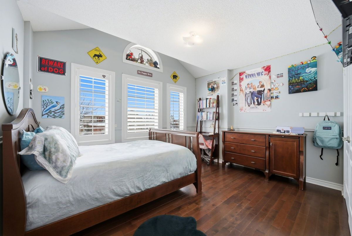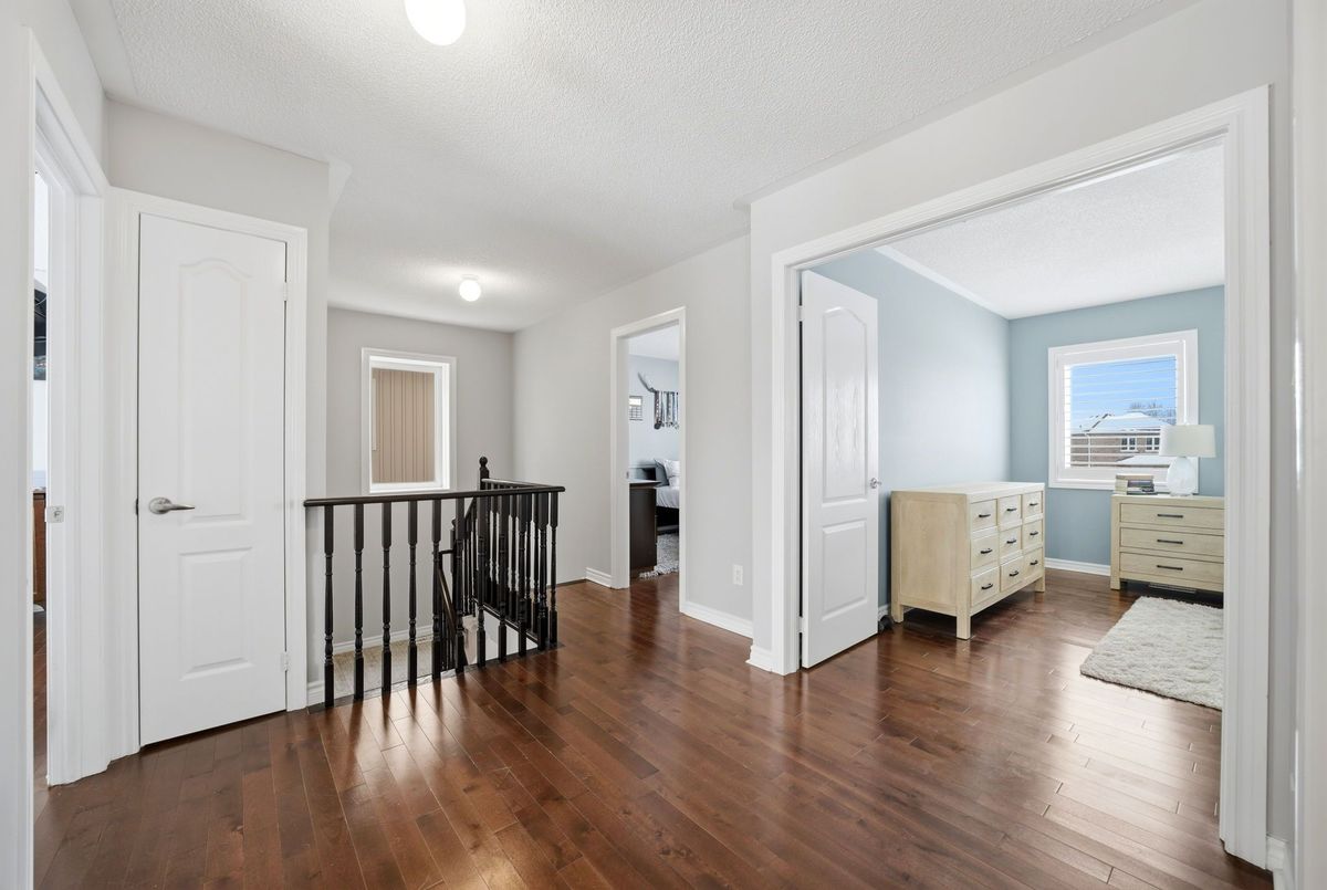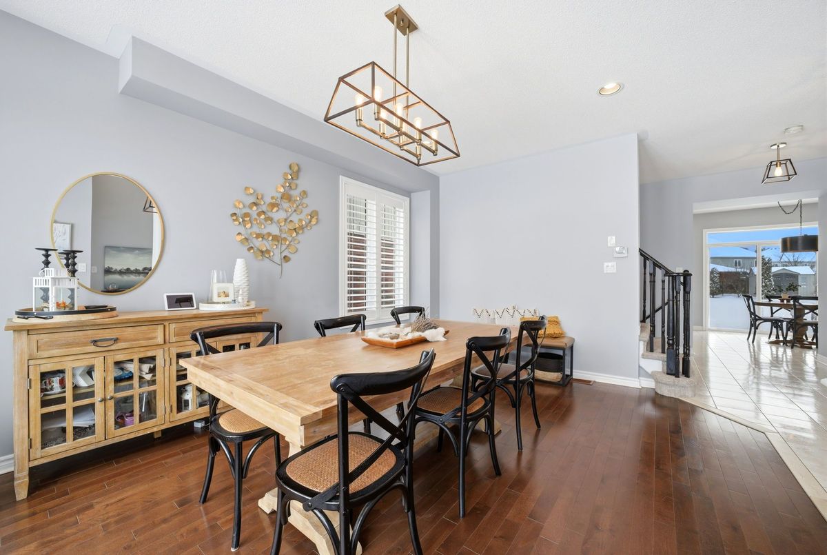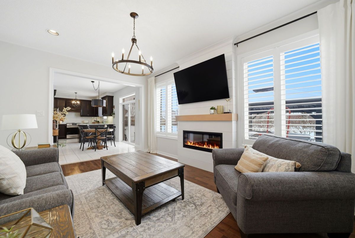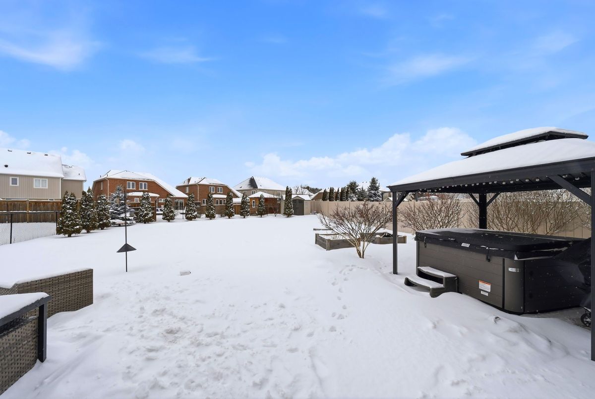 Welcome to this beautiful family home offering modern comfort and exceptional outdoor living in the growing community of Angus. Bright and spacious throughout, the home features 9-foot ceilings, elegant hardwood flooring, ceramic tile, and California shutters throughout. The inviting eat-in kitchen, a convenient breakfast bar, stove, and stainless steel appliances. Step outside to a large poured concrete patio overlooking a massive, fully fenced backyard complete with a sprinkler system and a relaxing hot tub-perfect for entertaining family and friends. Additional highlights include a top-of-the-line water filtration system, new furnace (2026), stone landscaping at the front for impressive curb appeal, main floor laundry, and inside entry to the double garage. Enjoy The Convenience Of No Sidewalk, Allowing For Extra Driveway Parking And Easier Winter Maintenance. The spacious primary bedroom retreat features a walk-in closet and a full ensuite with a luxurious soaker tub and separate shower. Three additional generously sized bedrooms provide plenty of room for a growing family. The full unfinished basement creates the perfect opportunity to design the space according to your future vision-whether it's a recreation room, home gym, theatre, or in-law suite. Located in the family-friendly community of Angus, this home is close to parks, schools, recreation facilities, and everyday amenities, while also benefiting from low property taxes-making it an outstanding opportunity for homeowners.